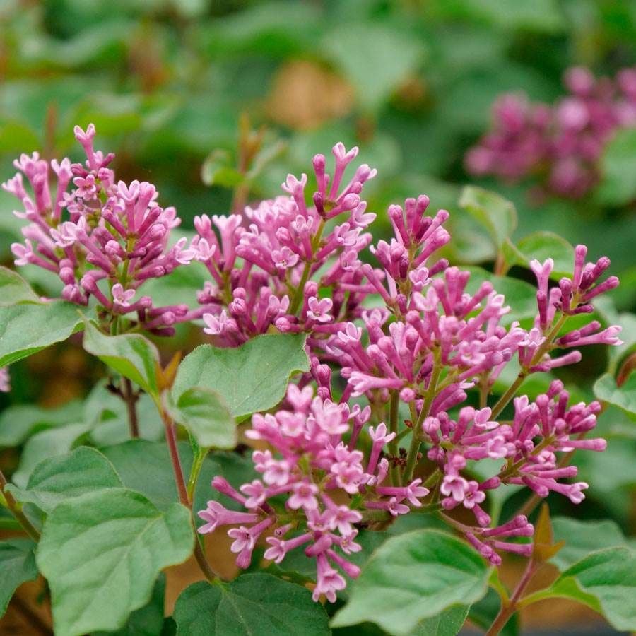 A reblooming dwarf lilac variety, Syringa Bloomerang® Dwarf Pink is a deciduous shrub offering three seasons of interest. Small, distinctive heart-shaped leaves emerge dark green, retain their color in summer, and often turn bronze to purplish red in fall. Continuously blooming, Syringa Bloomerang® Dwarf Pink sets large, very showy panicles of lightly fragranced dark pink flowers. Blooming on old and new wood in spring, summer, and fall, the sweet-scented flowers attract bees, butterflies, and hummingbirds and make lovely bouquets. For longer lasting cuts, choose stems that have at least three-quarters of the flowers open, harvest in the cool of morning, remove all leaves, and immediately place in fresh, cool water.