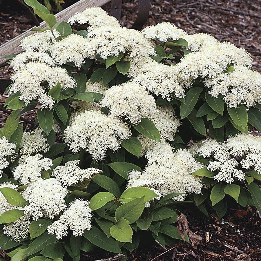 Just 12 to 24 inches high and wide, Viburnum Lil Ditty® shrub paints the garden floor in bold color, fragrance, and texture. The new spring foliage emerges bright green, arrow-shaped and beautifully veined. Viburnum Lil Ditty® is topped in late spring by large puffballs of airy creamy-white, long-lasting and eye-catching. They release a powerful scent, adding another element of interest to the landscape.