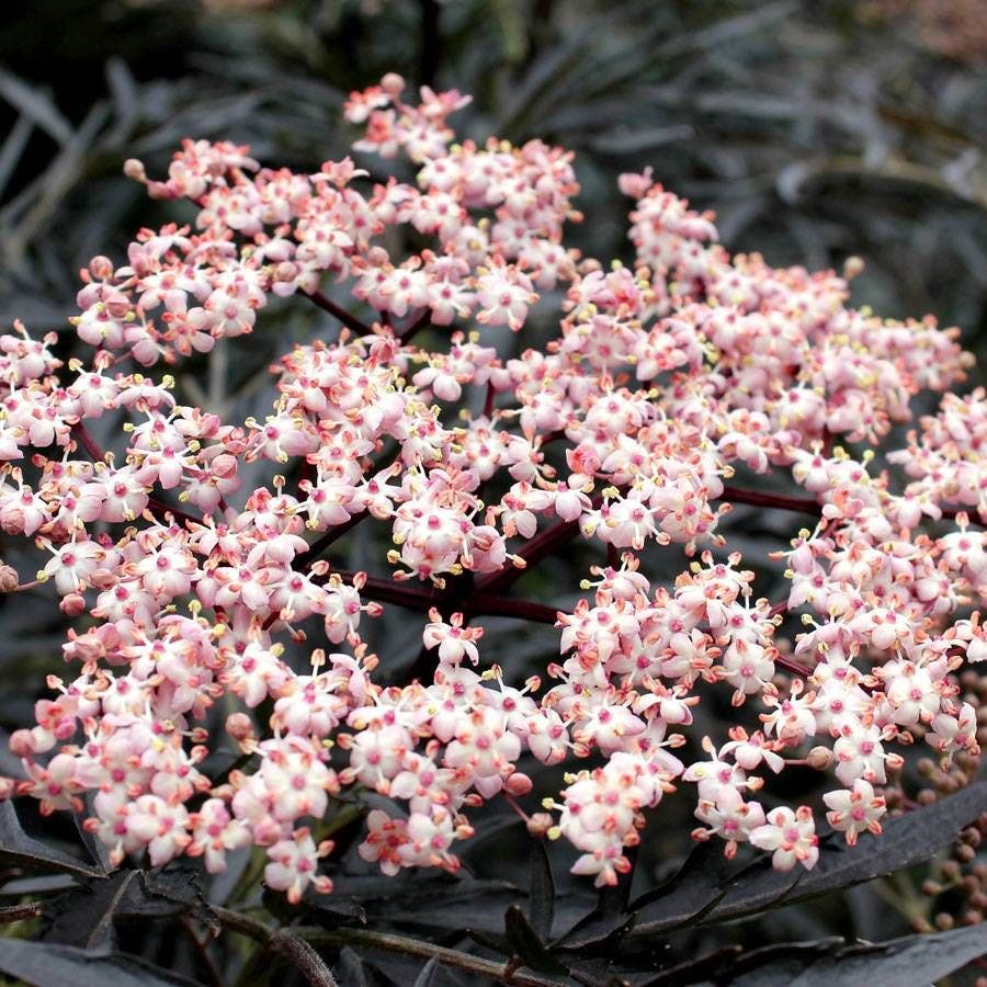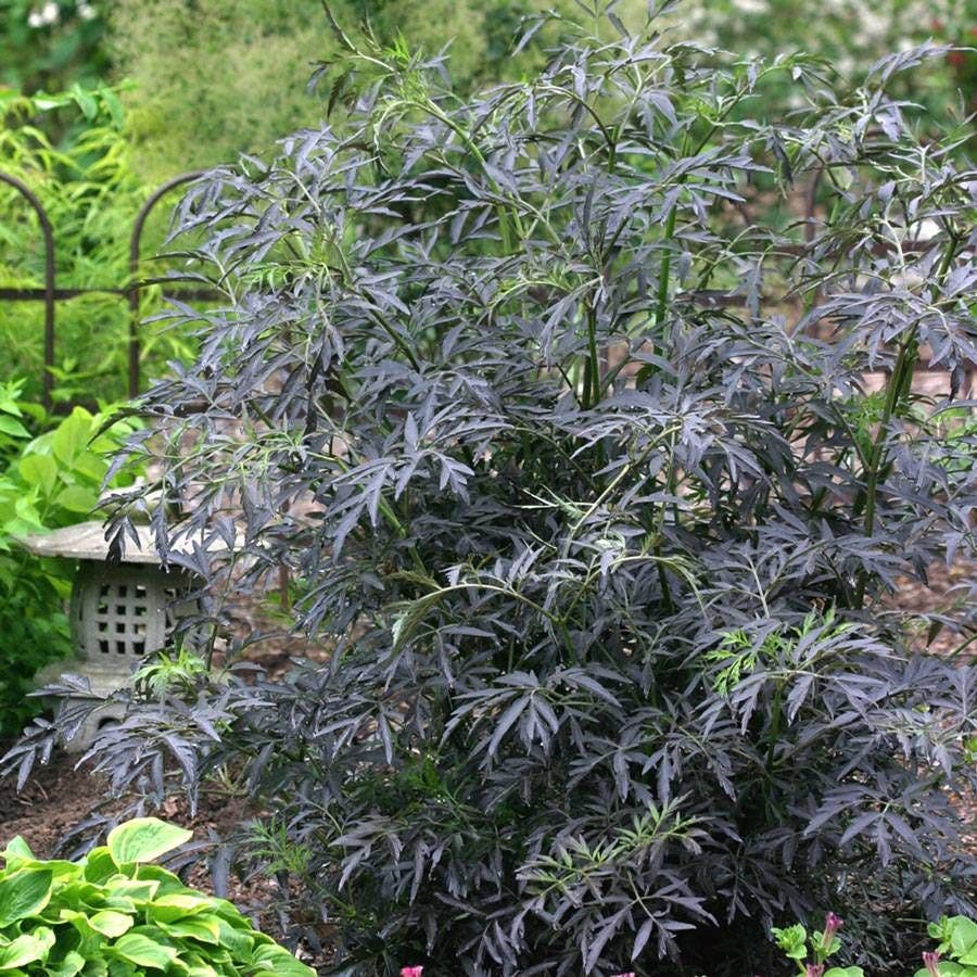 Love Japanese maples but live too far north to grow them? Let Sambucus Black Lace® be the gorgeous substitute. With its deeply cut leaves of charcoal, PLUS 6-inch clusters of blooms and vibrant autumn berries, this ever-changing beauty is the showpiece of any hedge, border, foundation, or specimen planting.