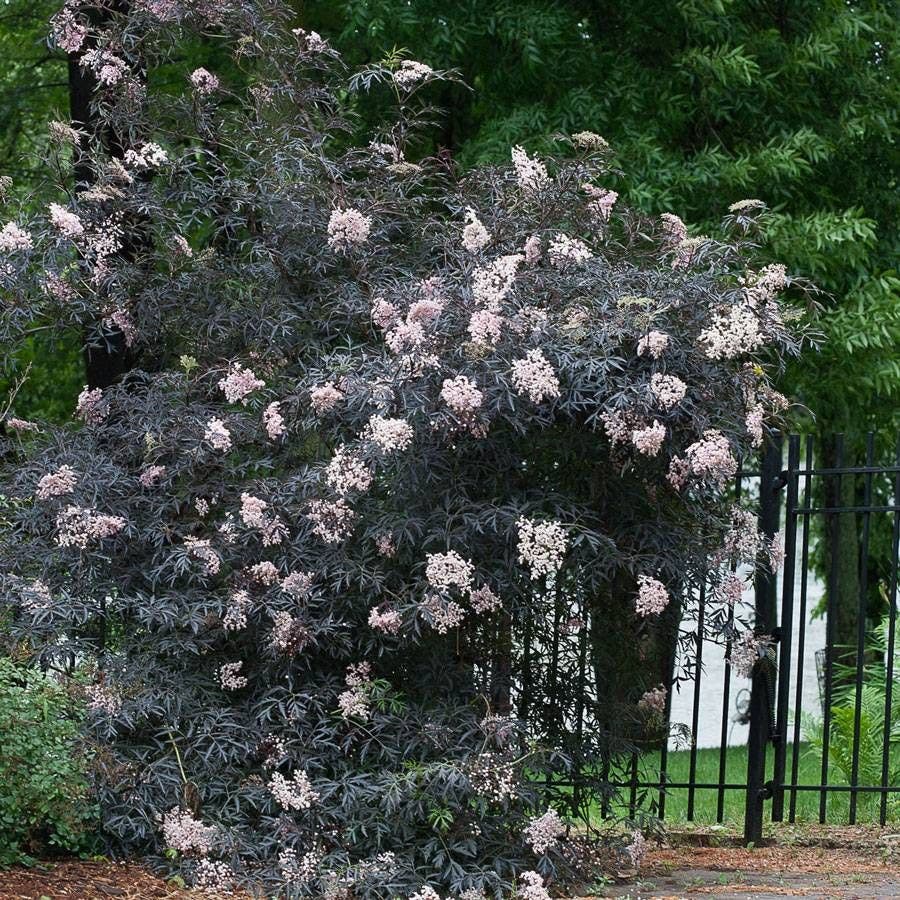 Sambucus Black Lace® would make a perfect hedge, foundation planting, border standout, or specimen. It reaches 6 feet tall and 8 feet wide, a good size for a variety of landscape uses. Design a garden display around its black leaves and early summer flowers, and it may become a favorite in YOUR landscape.