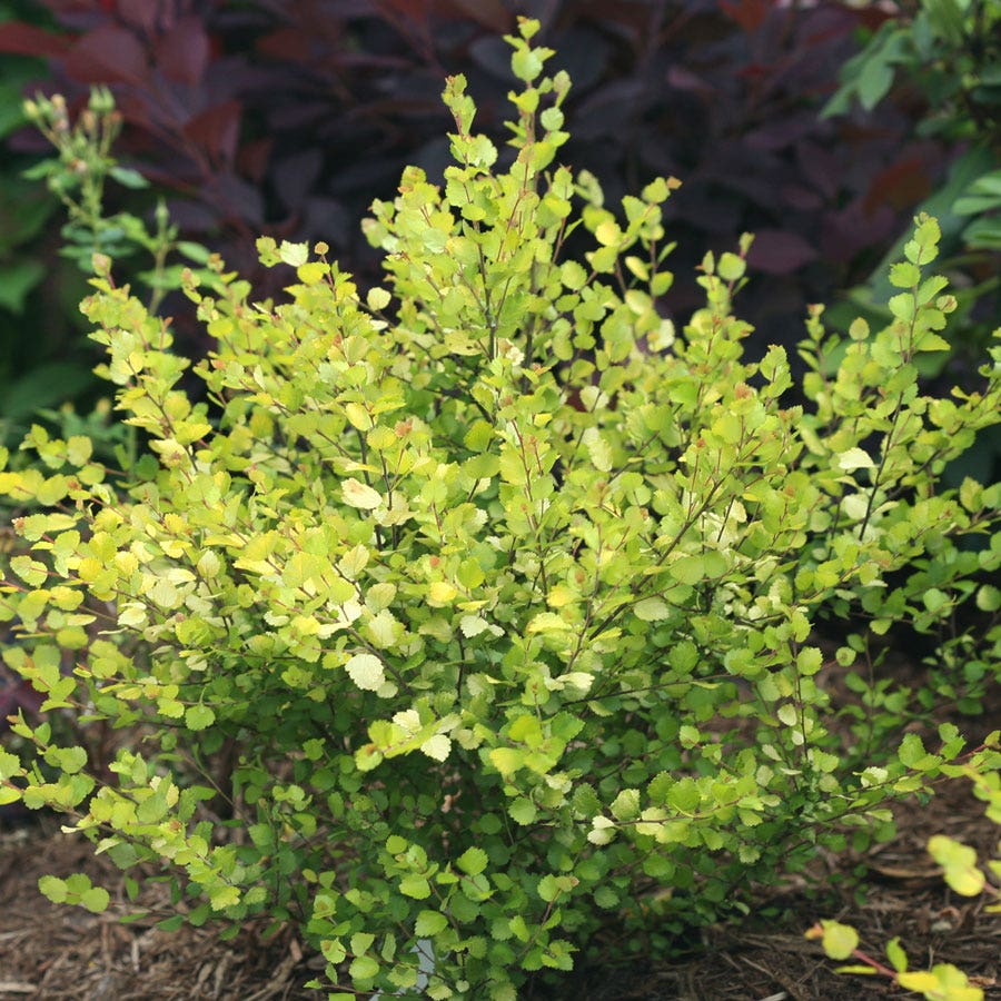 Cesky Gold™ has absolutely earned its name with magnificent yellow leaves that offer season-long interest. Serrated edges give the fan-like leaves depth and personality. The tiny leaves lighten to a bright yellow-green color in spring, only to darken to a golden yellow in summer. Before the leaves fade to yellow, they burn a deep red color, complimented by the light orange-bronze branches.