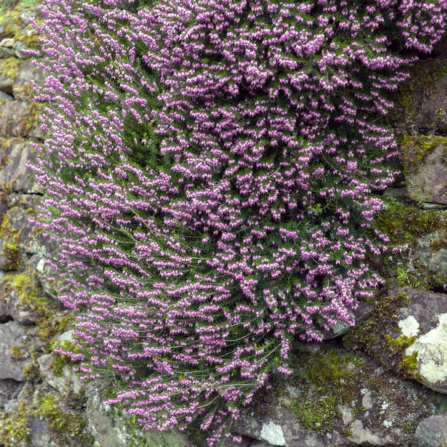 An extremely popular perennial, Mediterranean Pink heath has rosy-lavender blooms that rise above needle-like dark green foliage from winter to spring, adding some much welcome color to the winter garden or vase. It can be planted to spread as a ground cover or to cascade over the edge of a retaining wall or planter.