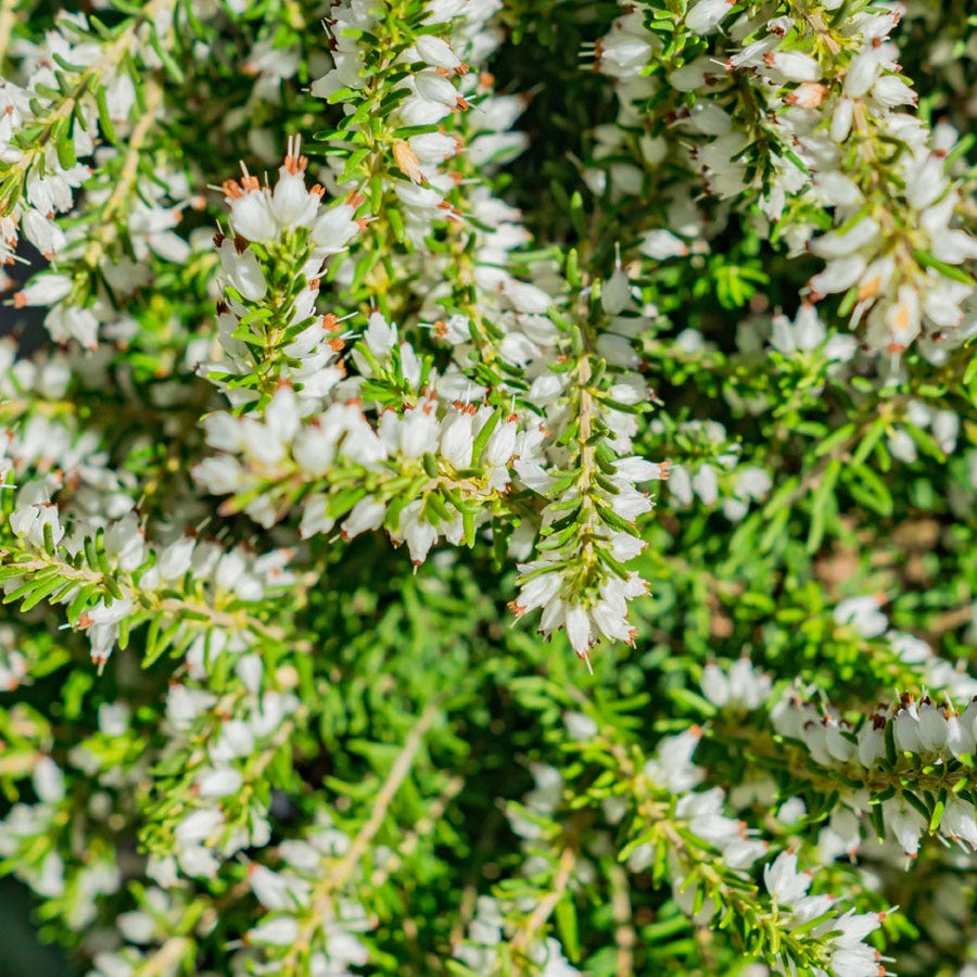 A colorful, early-season bloomer, Mediterranean White heath produces masses of clean white flowers borne on spiky branches of attractive evergreen foliage, offering color and delicate texture to the winter garden.