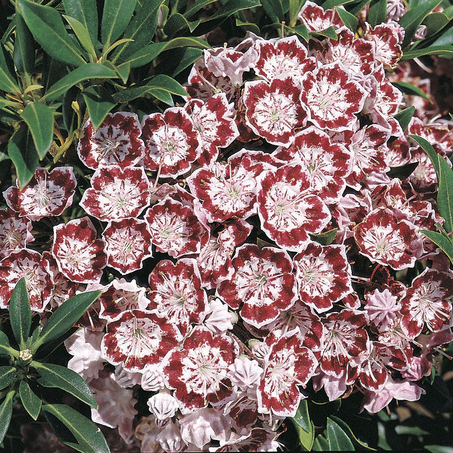 One of the most beautiful Mountain Laurels ever, 'Minuet' is a slow-growing dwarf just perfect for small gardens and space-saving settings, with brilliant cinnamon-and-white blooms that burst from big, showy pink buds!