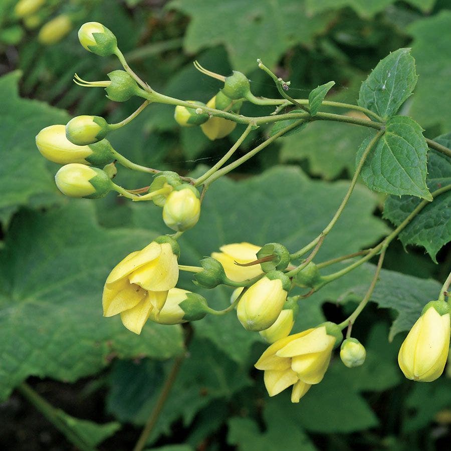 Kirengeshoma palmate, commonly known as Yellow Waxed Bells, is highly sought after, being one of the more interesting and dramatic editions to the shade garden.