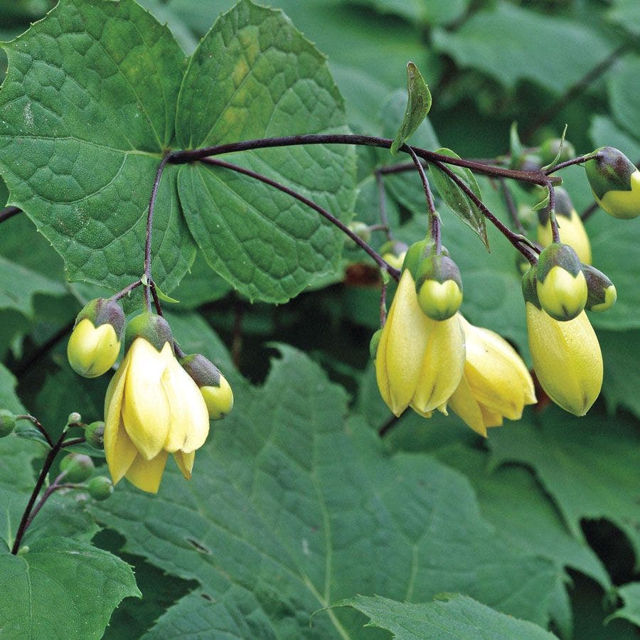 This herbaceous perennial is super hard to find, but luckily Wayside Gardens is here to help. This plant is a must-have for the woodland garden, offering huge, maple-like leaves and bright yellow blooms. A late bloomer, the bell-like flowers appear in midsummer to fall, dangling from erect, purple branches. The striking blooms are funnel-shaped, rarely open fully, and reach 1 to 2 inches long.