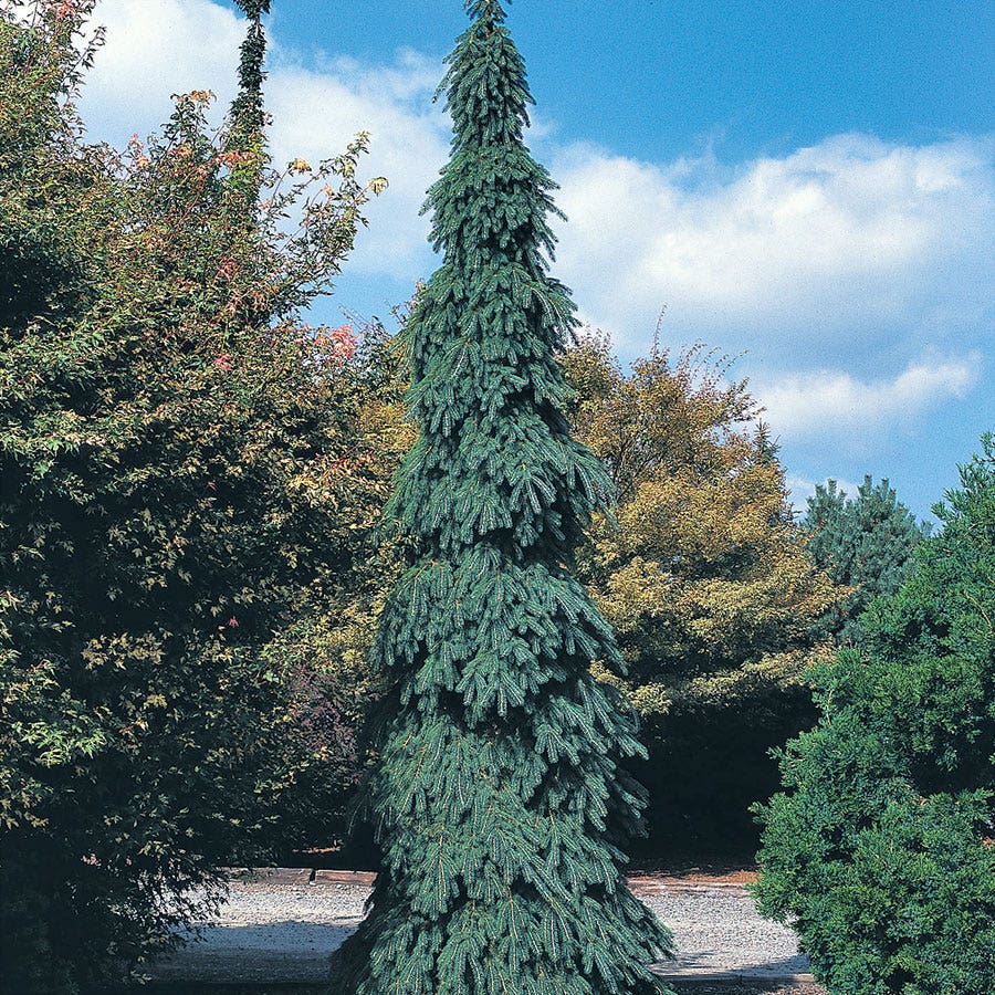 Pendula is a highly attractive tree that certainly lives up to its name. The branches swing so low that they're almost parallel with the trunk! Each branch is positively packed with dense dusky green needles, giving the entire tree a very soft elegant look. The tall narrow habit is quite striking and definitely commands attention from onlookers near and far. It is noted for its rapid growth can reach heights up to 20 to 30 feet! The primary branches are upturned slightly while secondary branches hang loosely as the tree matures. Branches are filled with spirally-arranged, four-sided, needle-like, dark green leaves. This dapper deer-resistant tree is easy to grow and is a great choice your landscape. This lovely evergreen is easy to care for and is great for privacy and ornamental interest in your garden!