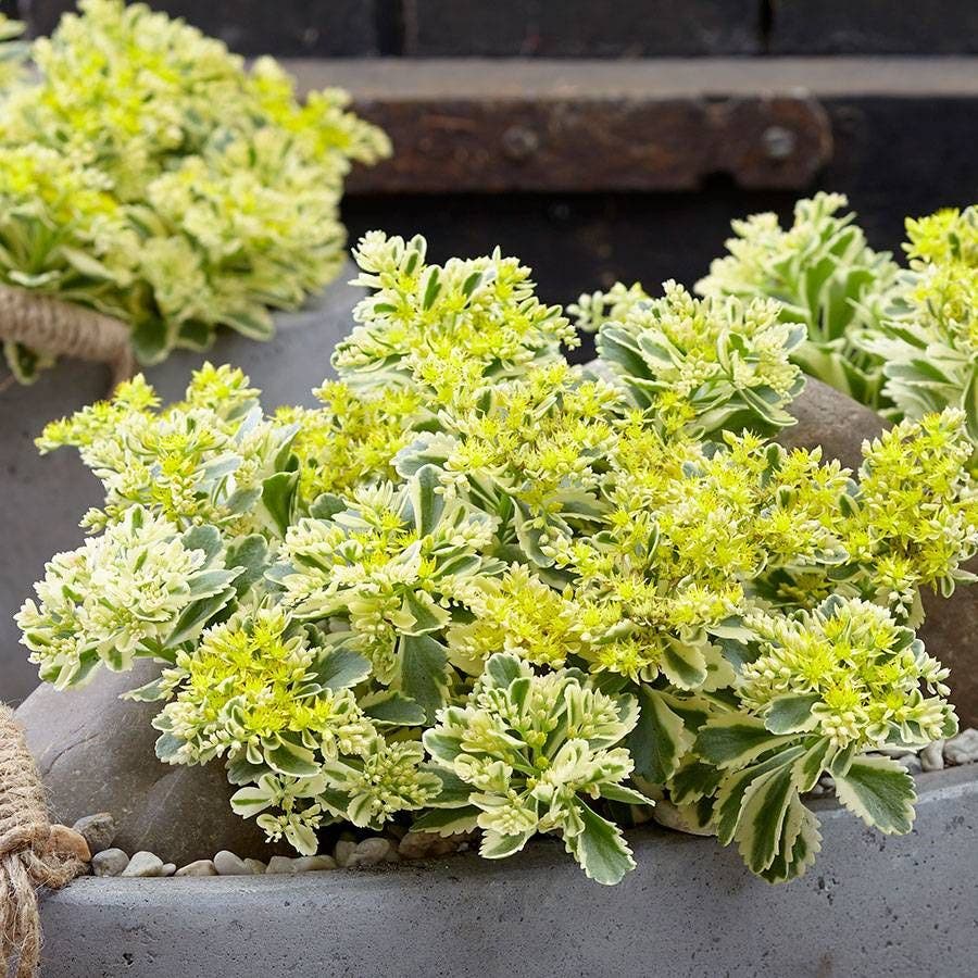 Like its mythical namesake suggests, the allure of the Atlantis™ sedum is truly legendary! Its shocking foliage forms rosettes of serrated leaves which are green with thick, creamy chartreuse margins. But wait, the bi-color beauty becomes a tri-color triumph in late fall when the colder temperatures add a pink blush to the edges. This low growing, drought-tolerant succulent is ideal for adding excitement to rock gardens and waterwise landscapes as it spreads to form a dense mat of foliage to cover up slopes and troubled spots in the terrain. Like most of its kind, this sedum is carefree and nearly unkillable. Rabbits don't bother it and its yellow summer blooms attract pollinators like butterflies. Plant it in full sun in a bed, border, or container to watch it flourish. Atlantis™ is one multi-talented star and it can't wait to add some vibrant fun to your landscape!