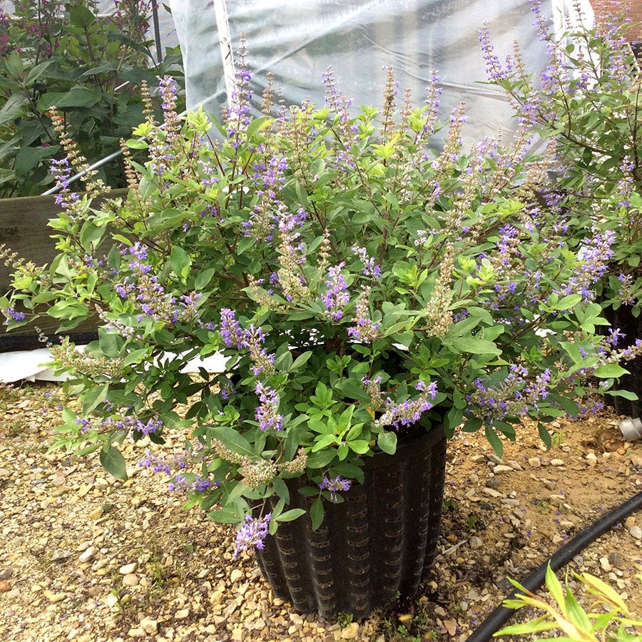 No matter how harsh the summer sun, the cool violet-blue flowers of this classic Chaste tree stay plush and lovely, refusing to wilt under the pressures of the season. Pollinators such as butterflies and hummingbirds adore the 8 to 12 inch azure flowers making this a must have for pollinator-friendly gardens. What makes the blue plumes even more vibrant is the dark and dapper green foliage that surrounds them. Blooms best in full sun and will reach about three to four feet high and wide. These blooms refuse to wilt in the summer heat and will bring plenty of color and life into your landscape. Prune into a shrub or a small tree and watch as this high quality variety presents a full season of glory in your landscape.