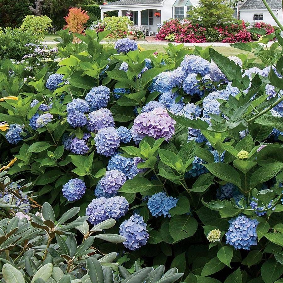 Characterized by cane-like growth, this multistemmed shrub thrives in morning sun and afternoon shade, with rich, well-draining soil. For deep blue hydrangea flowers, opt for garden lime to make the soil more alkaline. Or, you can enrich the soil with coffee grounds to enhance acidity for vivid blue hydrangea blooms. Apply these nutrients in early spring to influence flower color, ensuring a stunning blue display in your garden.