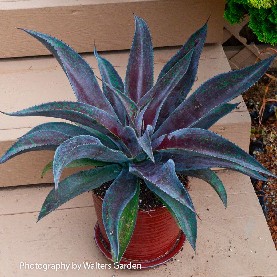 Mangave is an intergeneric cross of Manfreda x Agave, giving these hybrids the better growth rate and interesting patterns of Manfreda and the habit and refinement of Agave. 'Mission to Mars' has a compact habit and a moderate growth rate. A great specimen in the garden, it's a good choice for rock, alpine, and waterwise gardens or for xeriscapes. But it's an excellent container plant, inside or outside. In regions with cold winters, the plant will need to be moved inside and should be held at temps above 60°F.