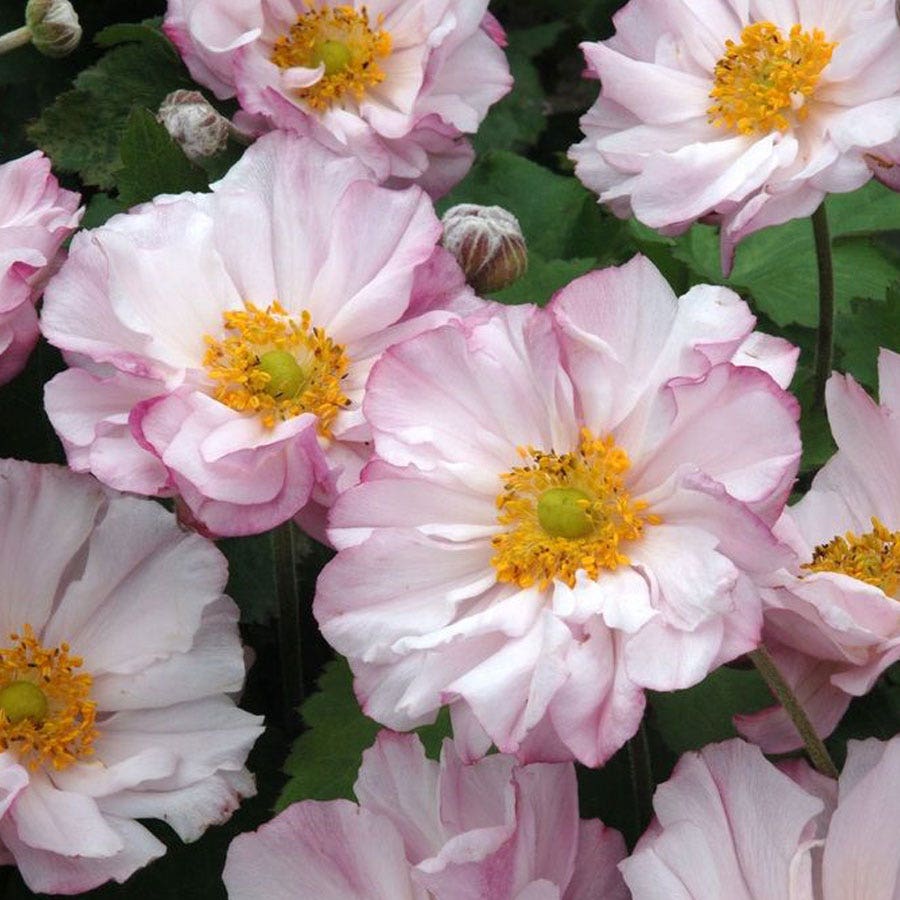 Hands down one of the most elegant perennials to grace a garden, this Japanese Anemone is truly a must-have. It features plush powder pink semi-double flowers lifted on tall, very snippable stems which sways hypnotically in the breeze. This windflower shows off in late summer where its large blooms lure bees, butterflies, and lots of admiring glances from passersby.'Loreley' is eager to spread and naturalize but is tame enough for small gardens and container plantings. Practically nothing can resist the charms of this anemone, except(thankfully)rabbits which give it a wide berth. Whether you wish to beautify bouquets or need a real standout in your outdoor displays, there's no wrong way to enjoy the ever lovely 'Loreley'.