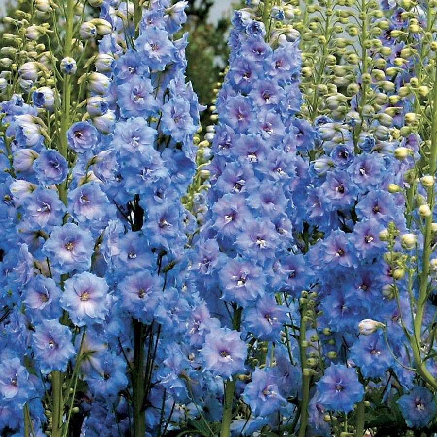 Delphiniums have been a garden favorite forever, but the new hybrids are far better than their older cousins -- they live longer, the blooms tend to be larger and closer together, and the plants often need no staking. 'Blue Lace' is a fine example of just how far this family has come lately, and it has our highest recommendation for its repeat-blooming rich blue color.
