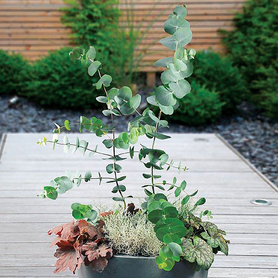 Eucalyptus is most at home in Mediterranean climates. It is an easy-grow, easy-care plant that grows best in a sunny location with average to moderately fertile, moist, well-draining soil having a neutral to mildly acidic pH. The plant is drought tolerant and deer resistant.
