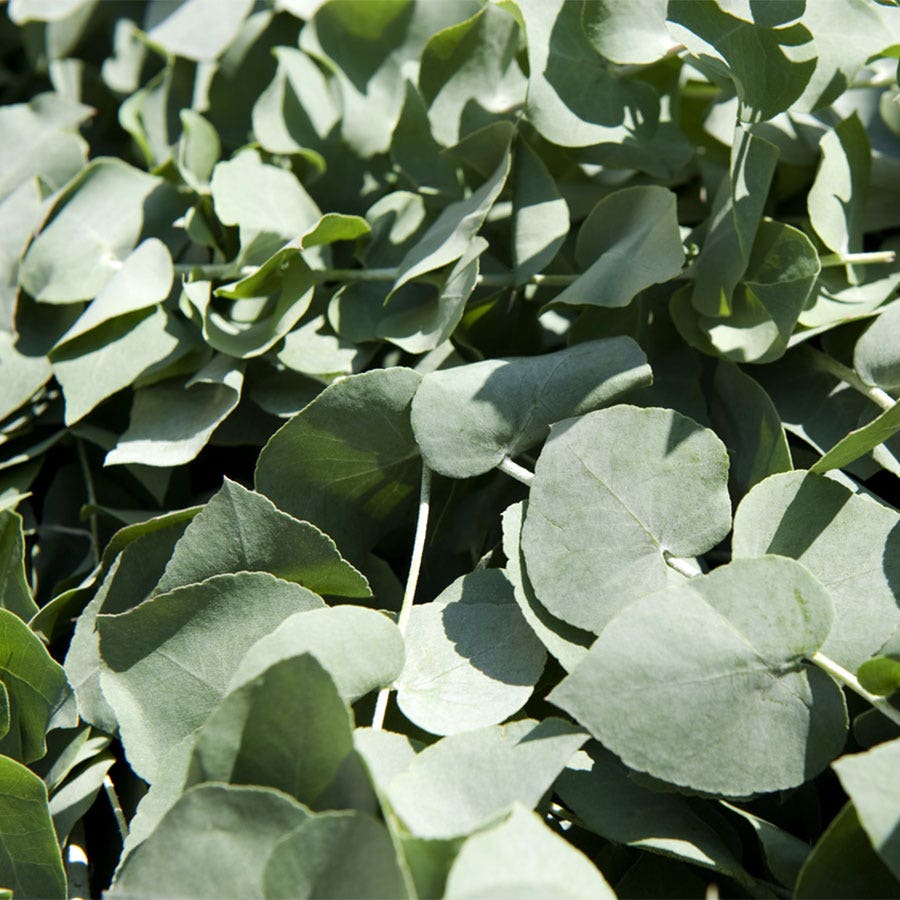 Eucalyptus 'Baby Blue' Spiral Eucalyptus is a small evergreen tree or sprawling shrub, grown for its lovely bushy, spreading habit and florist-quality foliage, which remains round and silvery blue from the juvenile stage to full maturity. Both foliage and stems have a strong eucalyptus scent and are covered in a waxy powder, which makes them long lasting when cut. In winter and spring, the tree blooms in white flowers. Highly popular with florists, the boughs are harvestable for foliage decoration or for additions to floral arrangements.