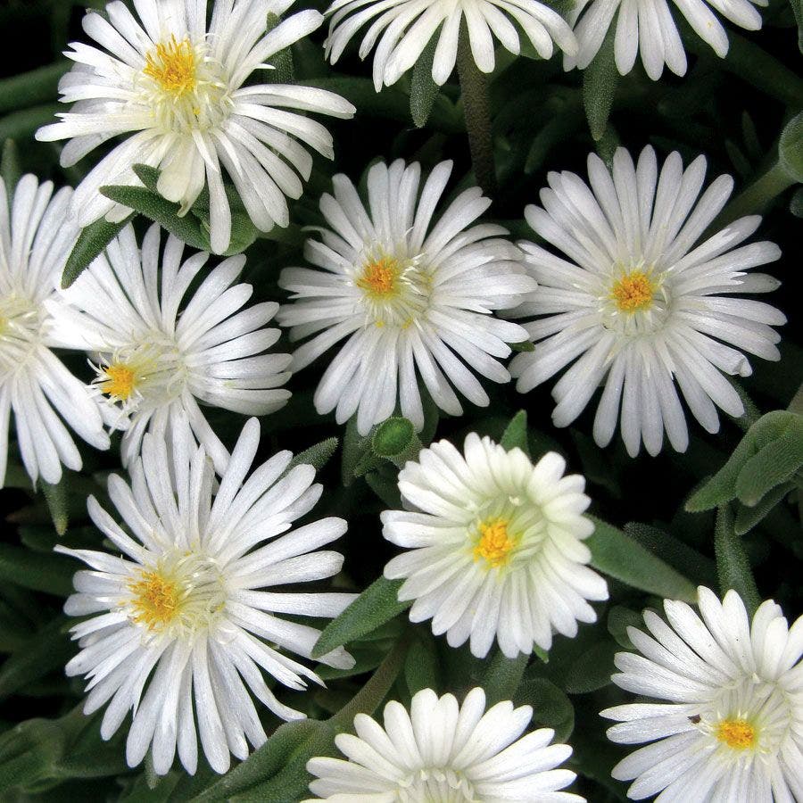 Delosperma 'Jewel of Desert Moonstone' stands out as a revolutionary addition to the world of gardening, delivering a constant flourish of ice plant flowers from the onset of spring until the arrival of frost. This white iceplant distinguishes itself not as a rebloomer but as an everbloomer. Its pure white blossoms capture the essence of moonstone or opal, offering a mesmerizing display that enhances its appeal as a white ice plant.