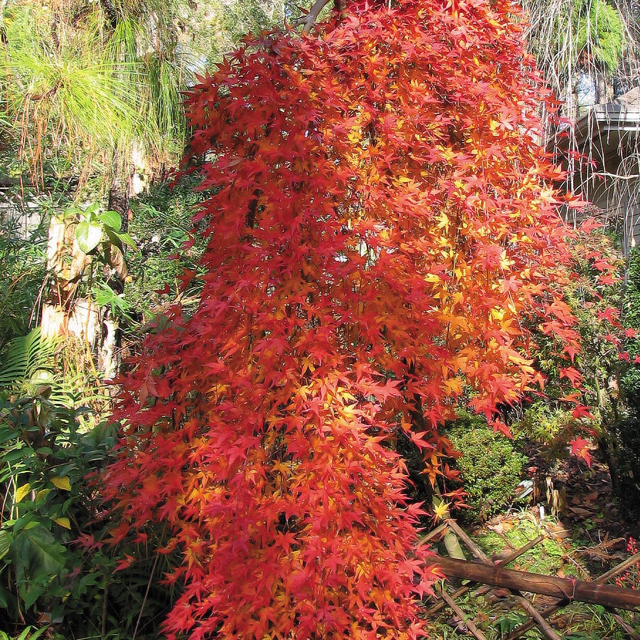The foliage on this slow grower turns brilliant shades of golden-orange and bright red in autumn. More heat- and sun-tolerant than many A. palmatum cultivars, 'Ryusen' leafs out late in spring, thus avoiding late frosts. Expect it to reach 20 feet long and 6 to 8 feet wide over many years. Zones 5-8.