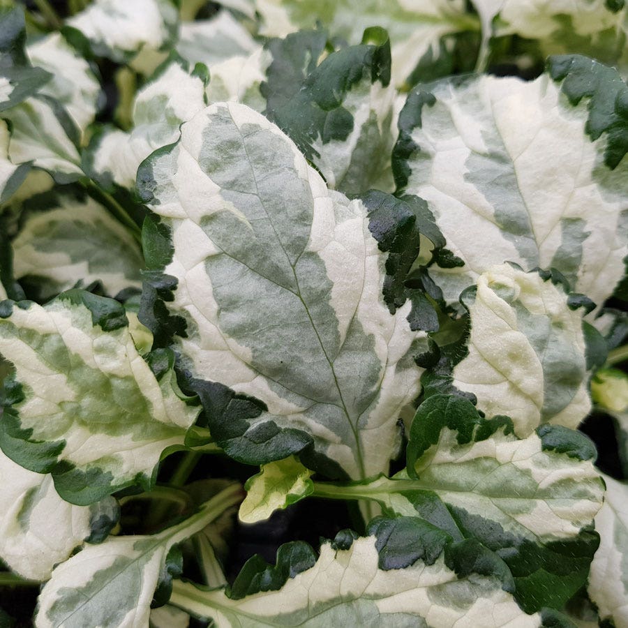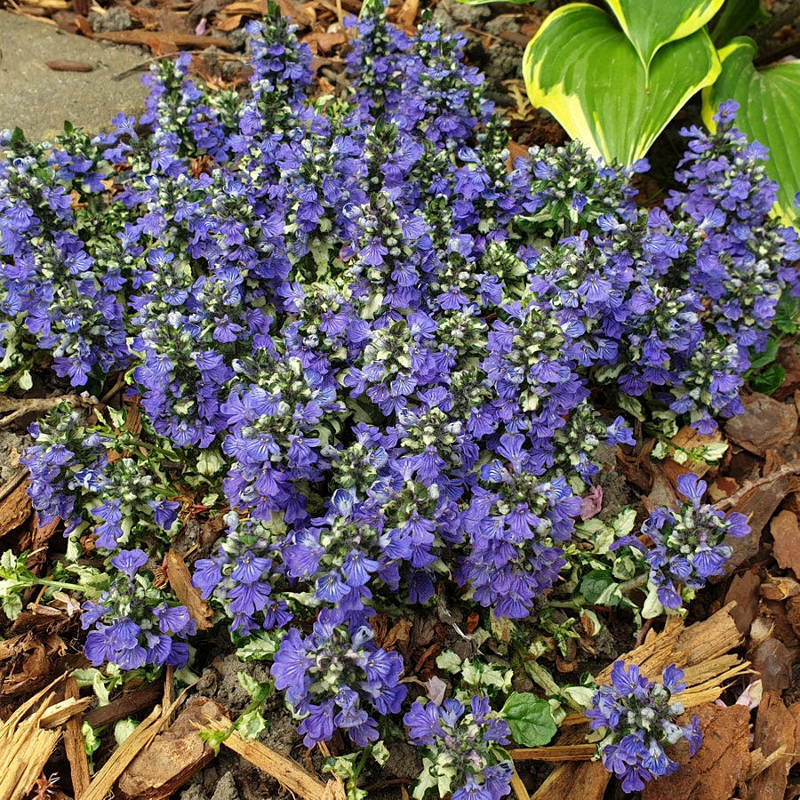 Ajuga Princess Leia is an evergreen perennial offering year-round interest. A highly popular plant, Princess Leia quickly creates a striking and colorful carpet of uniquely patterned, variegated green and white leaves that's blanketed in whorls of deep purple flowers in spring. Nectar-rich, the flower spikes are extremely attractive to bees.