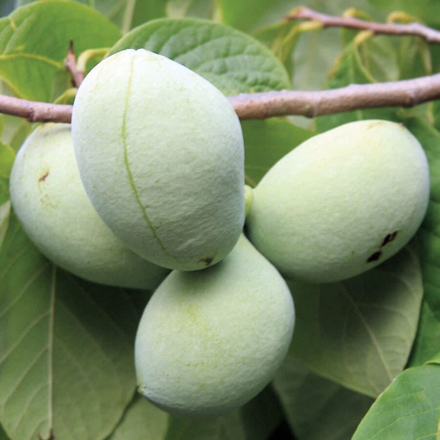 Pawpaws are small native deciduous trees that bear very large fruit with an extremely sweet, rich taste. The Asimina PawPaw 'Susquehanna'® is the largest of Neal Peterson's introductions. Cup-shaped purple flowers appear in spring, and give way to edible, oblong, yellowish green fruits which mature in early autumn to a dark brown. These fruits are massive, often weighing over a pound! The sweet flesh is plentiful and the seeds are few. Asimina PawPaw 'Susquehanna'® are richly flavored and absolutely delicious with a firm buttery texture.