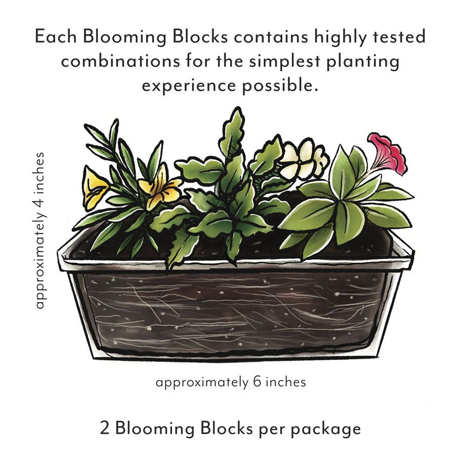 Embrace gardening without the hassle with our nutrient-rich Blooming Block, safeguarding against root damage. The Perennial Mix Peach Cobbler block boasts three rapidly growing annual flowers varieties: