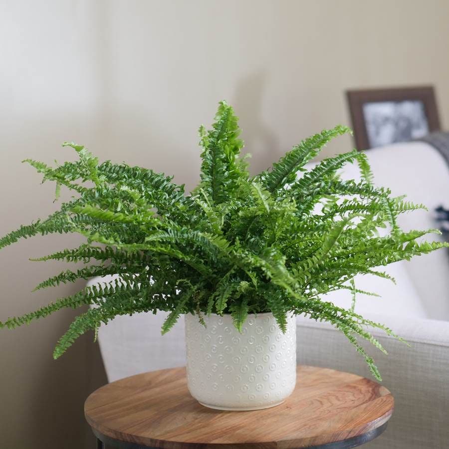 One of the most well-known and popular ferns, the Boston fern (Nephrolepis exaltata bostoniensis) is admired not only for its attractive frilly blue-green fronds but also for its ability to thrive indoors. All it requires is a steady environment, consistent watering, and moderate light to be healthy and happy. Its flexibility to be displayed in any number of waysas a lush specimen on a pedestal or in a hanging basket or grouped as a part of a larger vignettemakes the Boston fern a perfect gift for almost anyone.
