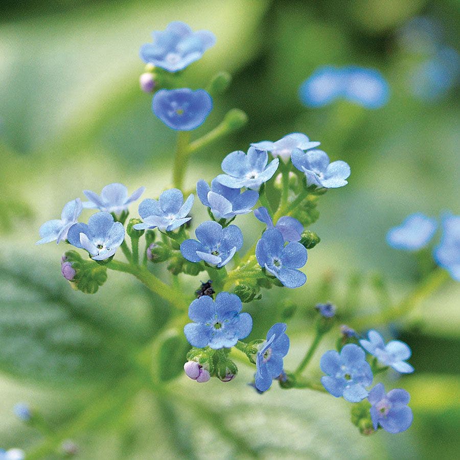 By mid-spring, the flowers are opening all over 'Sea Heart', facing straight up on slender stems carried above the foliage. They complement the silvery-green leaves perfectly, and keep arising through late spring. Expect them to begin earlier than other Brunnera varieties, and to last just as long -- giving you another week or two of beauty in the shade!