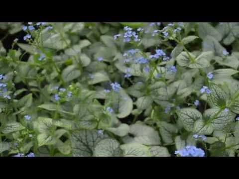The Brunnera 'Sea Heart' reaches just 6 to 12 inches high and spreads 1 to 2 feet wide. It's lovely in the front of the shade border, along pathways, and in containers, where its delicate, intricate variegation can be enjoyed up close. Very tolerant of summer heat and humidity, it requires little maintenance beyond enriched, well-drained, moist soil. Highly recommended. Zones 4-8.