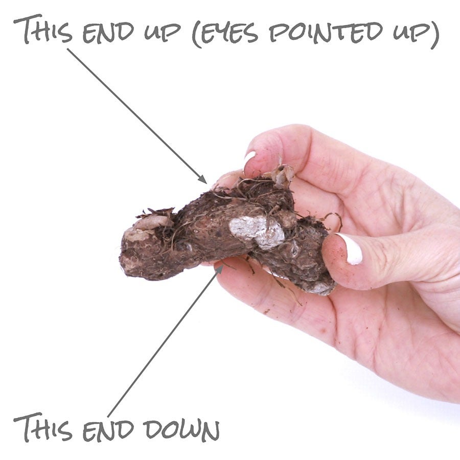 In cold climates, dig up tubers in fall, immediately after foliage die back or before first frost, and overwinter in a dry location with cool temperatures that never dip below 45°F. Store container plants indoors.