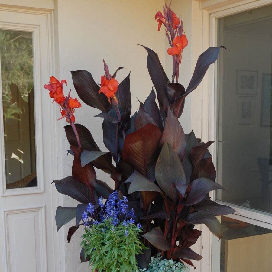 Stunning canna has tropical blooms and showy foliage, while they're not true lilies, they grow from rhizomes and so are easy to plant, divide, and take up if you're in a cooler hardiness zone. Find the details for growing cannas in our Canna Care Guide.