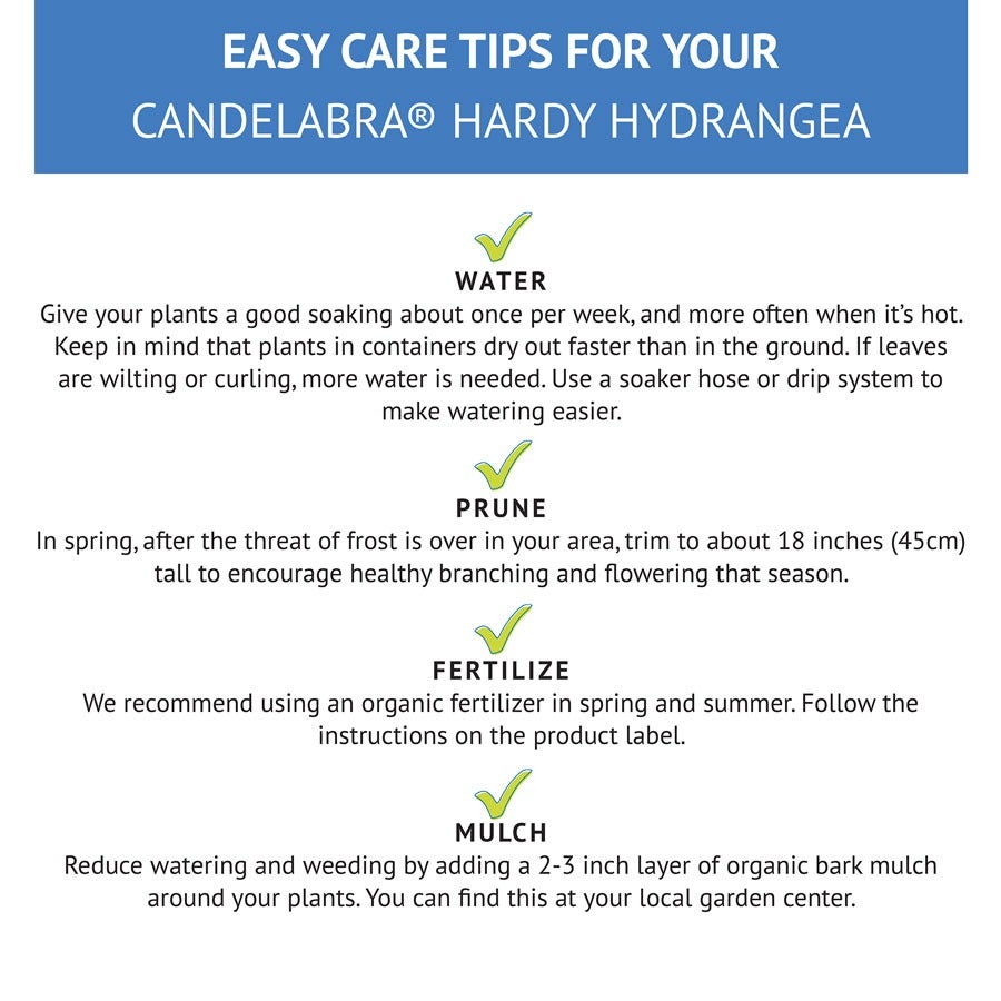Whether you're drawn to its charm or its stunning pink bloom color, the Hydrangea Candelabra promises to enhance the beauty of any outdoor space, be it your front border, patio, or garden sanctuary.