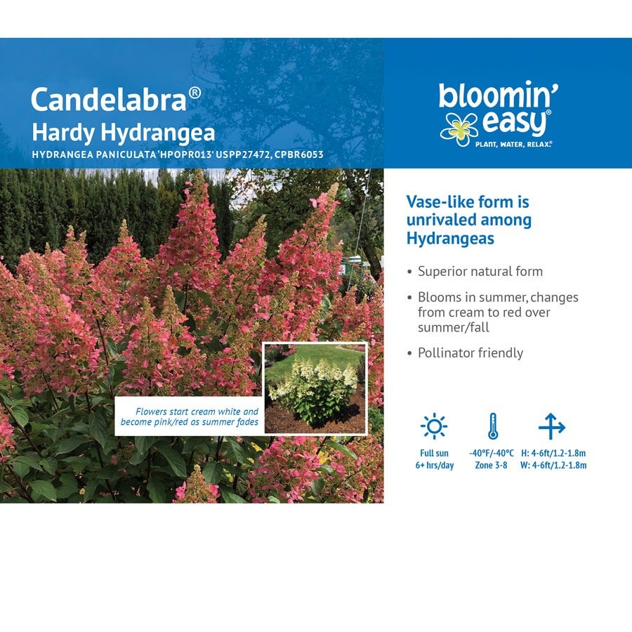 As a resilient Bloomin' Easy® selection, this hydrangea variety thrives in a variety of conditions, including draining soils. Whether you're new to planting hydrangeas or a seasoned enthusiast, the Hydrangea Candelabra is a perfect choice for any garden. It belongs to the Panicle Hydrangea family, known for its ability to bloom on new wood, ensuring a bountiful display year after year.