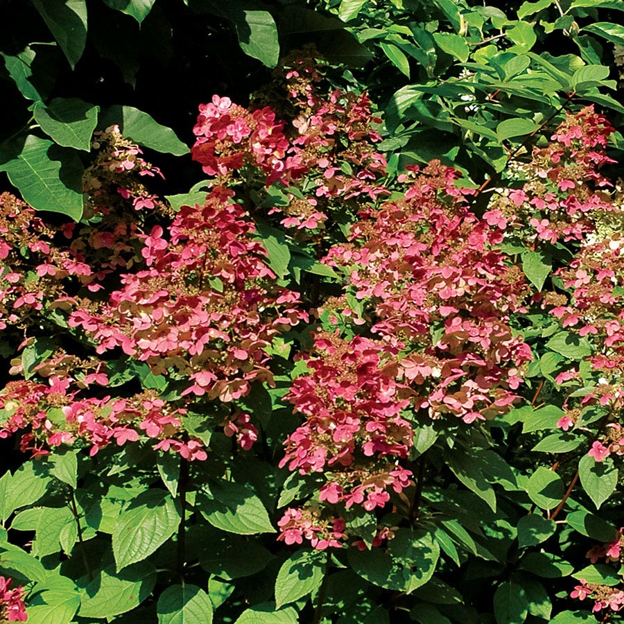 As the end of the season approaches, from the late days of summer and into the fall, Fire and Ice Panicle Hydrangea magically bursts into colors of magenta and burgundy. The plant will grow to a full 3 to 5 feet in height with the plump blooms expanding into a width of 3 to 4 feet when fully matured.