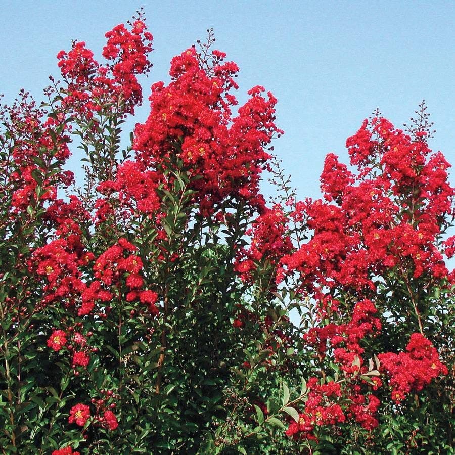 A joyful, repeat blooming tree with a color for every season - meet the Lagerstroemia Red Rocket® crape myrtle. In the spring, the Lagerstroemia Red Rocket® crape myrtle leaves unfurl to create a vivid crimson display before transforming into a delightful green in the summer. Once early summer approaches, the tree's round, eye-popping red buds form impressive eight-inch clusters that remain for several weeks until the foliage turns into bold amber in the fall. Lagerstroemia Red Rocket® crape myrtle is perfectly suited for hedges.