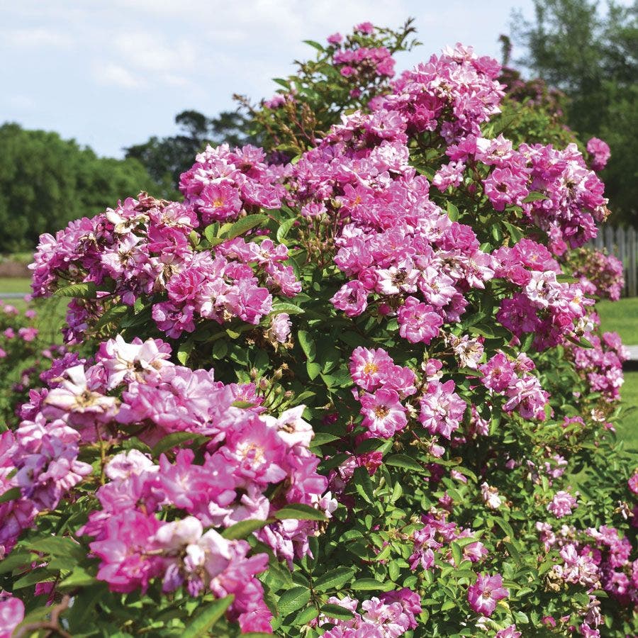 A favorite in Southern gardens yet hardy enough to thrive in colder climates, Peggy Martin Climbing Rose is a vigorous, semi-thornless variety well-known for its resilience, ease of care, and abundant blooms. This woody vine has strong, twining, multi-stemmed, and trailing canes. Its impressive size, that quickly reaches 6 to 15 feet high and wide, makes it an excellent choice for covering arbors, fences, and trellises with graceful cascades of color. Its vigorous nature and adaptability have made it a sought-after selection for gardeners who appreciate beauty and dependability.
