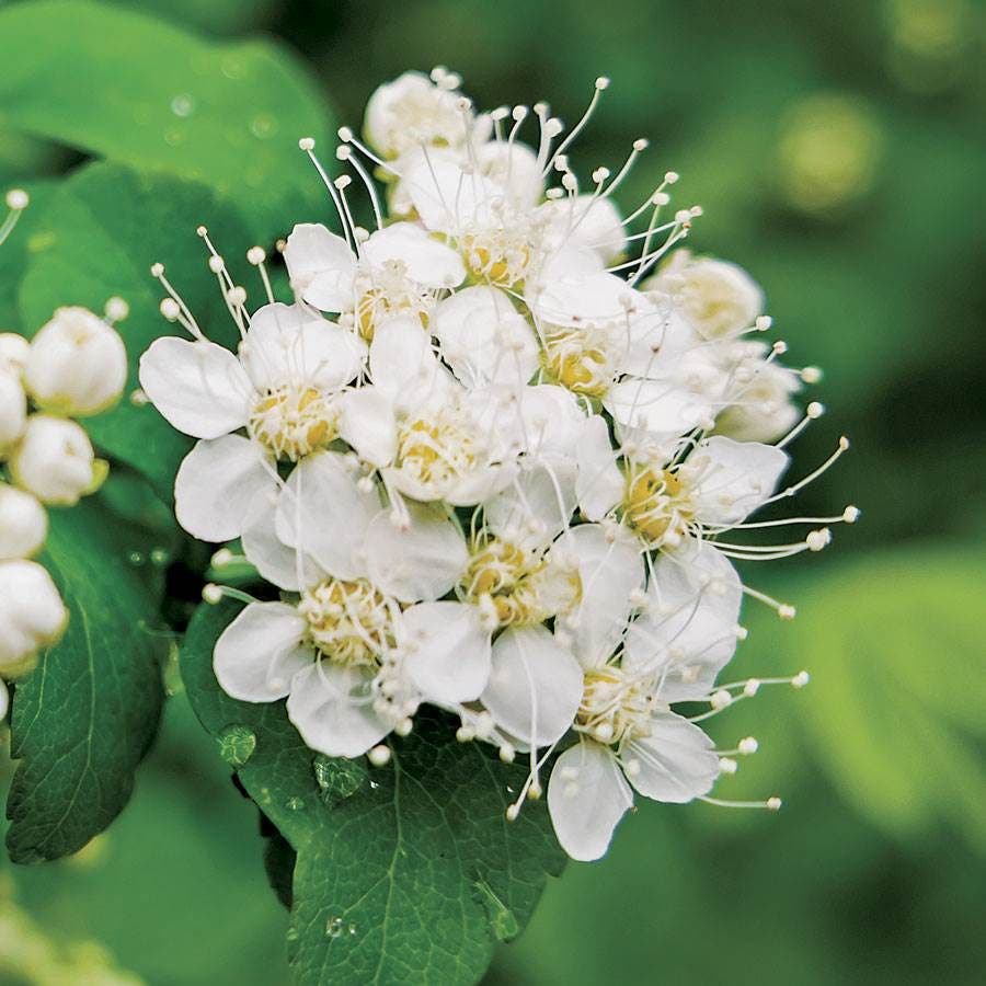Pyracantha (also known as firethorn) is an evergreen shrub with narrow glossy leaves. In spring, the plant bears clusters of small creamy white flowers that mature into orange-red berries, which persist through fall and early winter, making this a fun plant to own year-round.