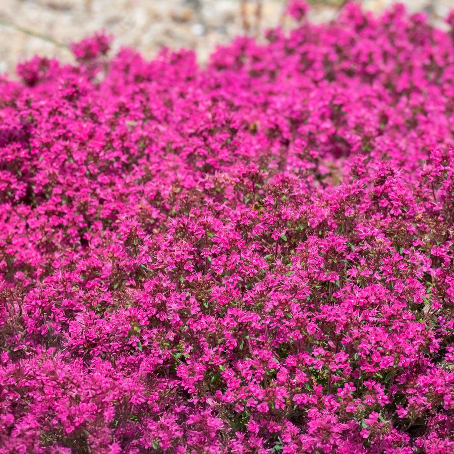 Our captivating 'Coccineus' Red Creeping Thyme, a delightful addition to any garden landscape. This enchanting plant brings forth a profusion of magenta or lavender-red blooms, transforming your garden into a picturesque wonderland during the early days of summer. With its low, sprawling nature, Red Creeping thyme lawn forms a lush mat adorned with fragrant foliage, making it an irresistible choice for sunny settings.