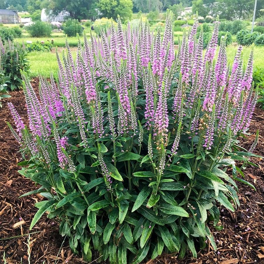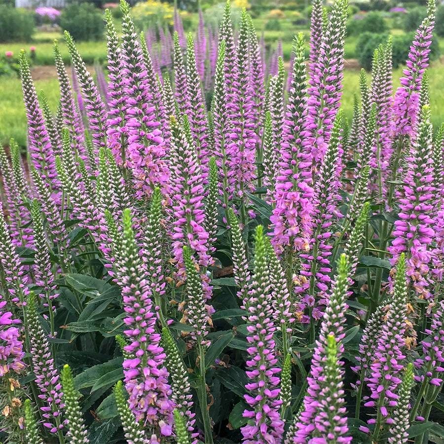 Embark on a horticultural journey without leaving your home with Veronica 'Lavender Lightsaber'. This unique cultivar stands out with its majestic rosy-purple plumes that ascend on robust, noteworthy stalks, elevating any garden scene to an extraordinary level of beauty. Unlike its more demure cousins, Veronica 'Lavender Lightsaber' boasts an expansive growth habit, making it a focal point with its striking vertical bloom arrangement. These enchanting flowers are not just a visual feast; they're also a magnet for butterflies and other beneficial pollinators, bringing life and vibrancy to your garden.